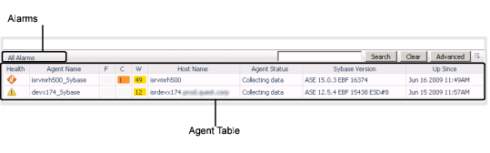 From the Sybase Agent Table, you can drill down to Sybase Agents Home Pages.