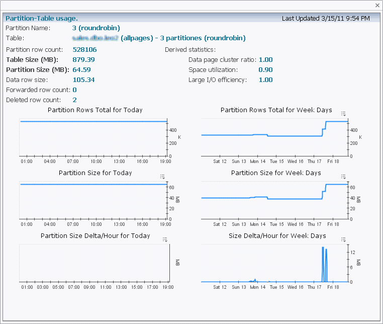 The table size in MB, shown over the course of the current week. | |