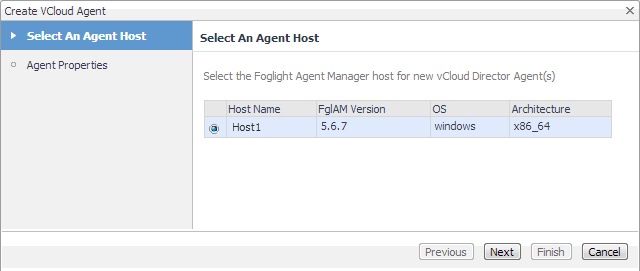 On the Select Agent Host page, select the running Agent Manager that you want to manage the monitoring agents you are about to create, and click Next.