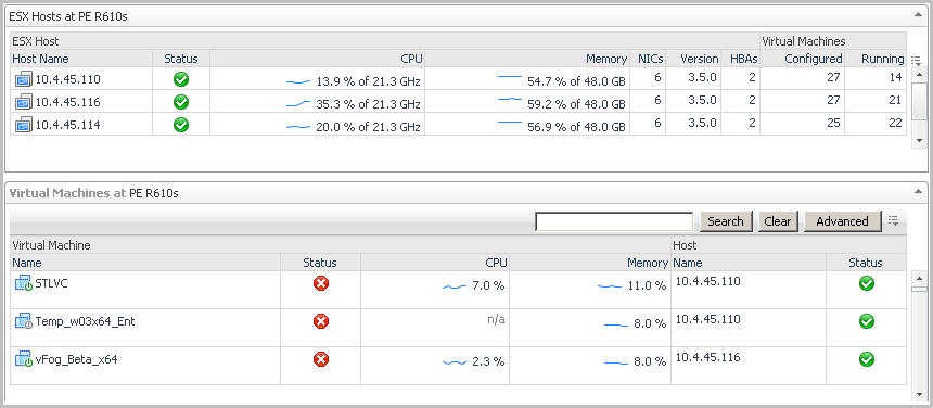 On the Virtual Infrastructure view, that appears on the navigation panel, select a Virtual Center, ESX host, or virtual machine instance.