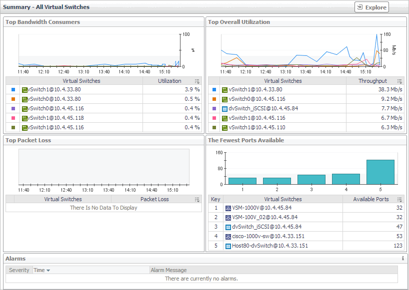 On the VMware Environment dashboard, on the Monitoring tab, in the Quick-View, select the Virtual Switches tile. |