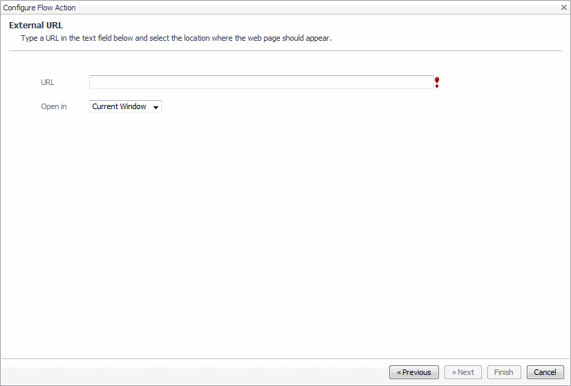 If External URL is selected in Step 5, the External URL page appears in the wizard.