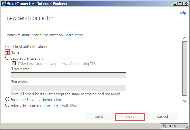 1. Under Smart host authentication, be sure that the None radio button is selected