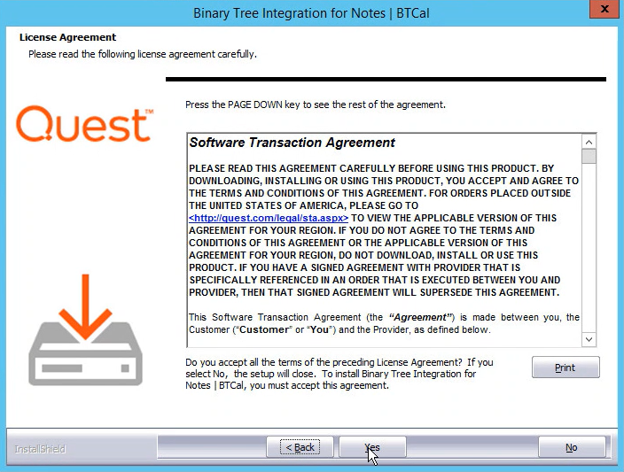 4. Review the Software License Agreement and then click Yes