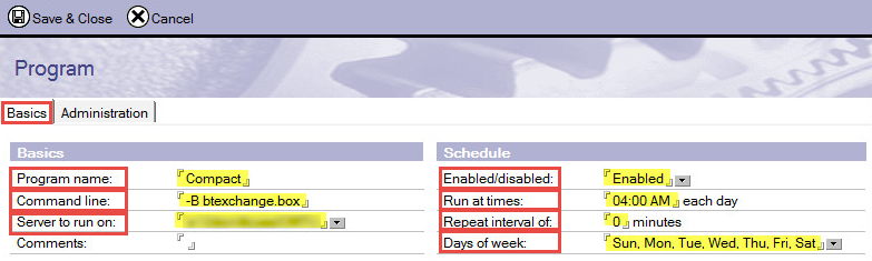 3. In the new Program Document that opens, edit the fields on the Basics tab to match the following recommended values: