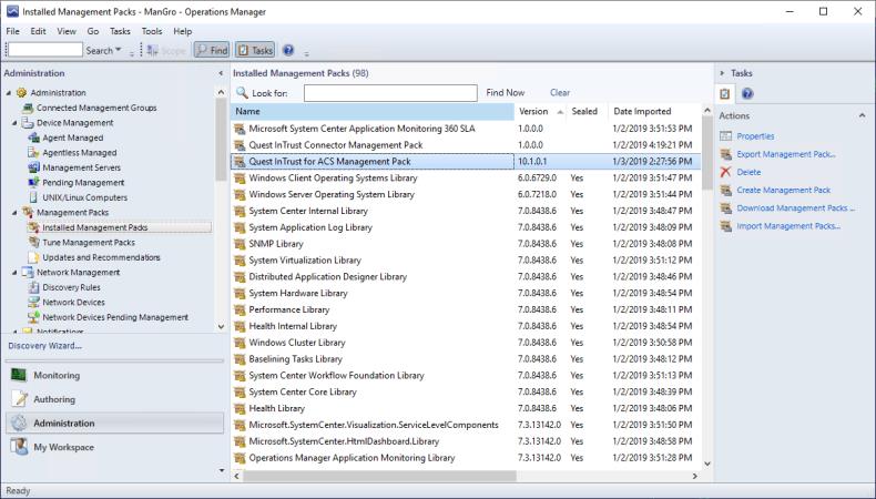 1. In Operations Manager console, go to the Administration page and select Management Packs.