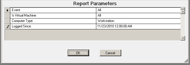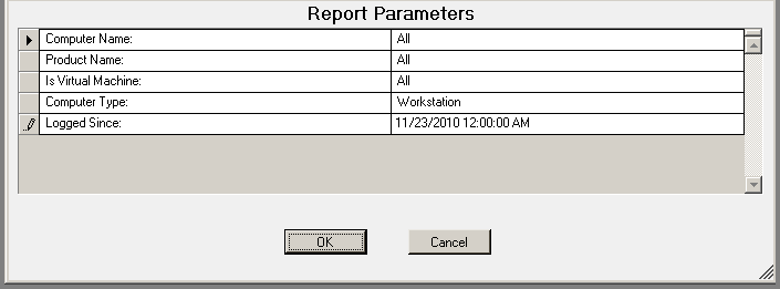 The USB-Port Security - Detailed by User(Fixed Devices) report prompts the user for the Scanned Since date to report on. The report can also be run for All machines, Virtual Machines only or Non-virtual Machines only.