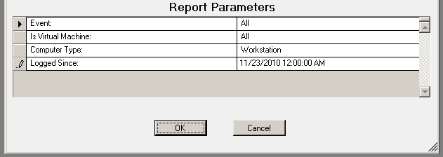 The USB-Port Security - Users Denied report prompts the user for the Scanned Since date to report on. The report can also be run for All machines, Virtual Machines only or Non-virtual Machines only.
