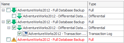 • Full, differential and transaction logs—The most recent full database backup and any existing differential and/or transaction log backups created after the most recent full backup.