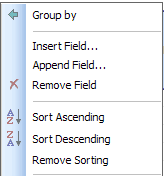 The following illustration shows the grouping options that might appear when you click the column header. The options that appear depend on the current settings.