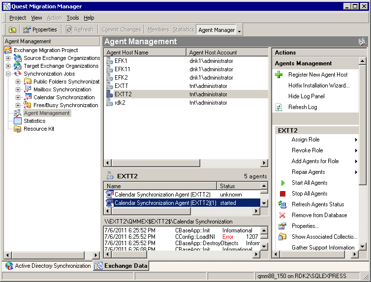 The recommended way to perform data migration successfully is to use standalone agent host servers instead of deploying Migration Manager agents on the Exchange servers.