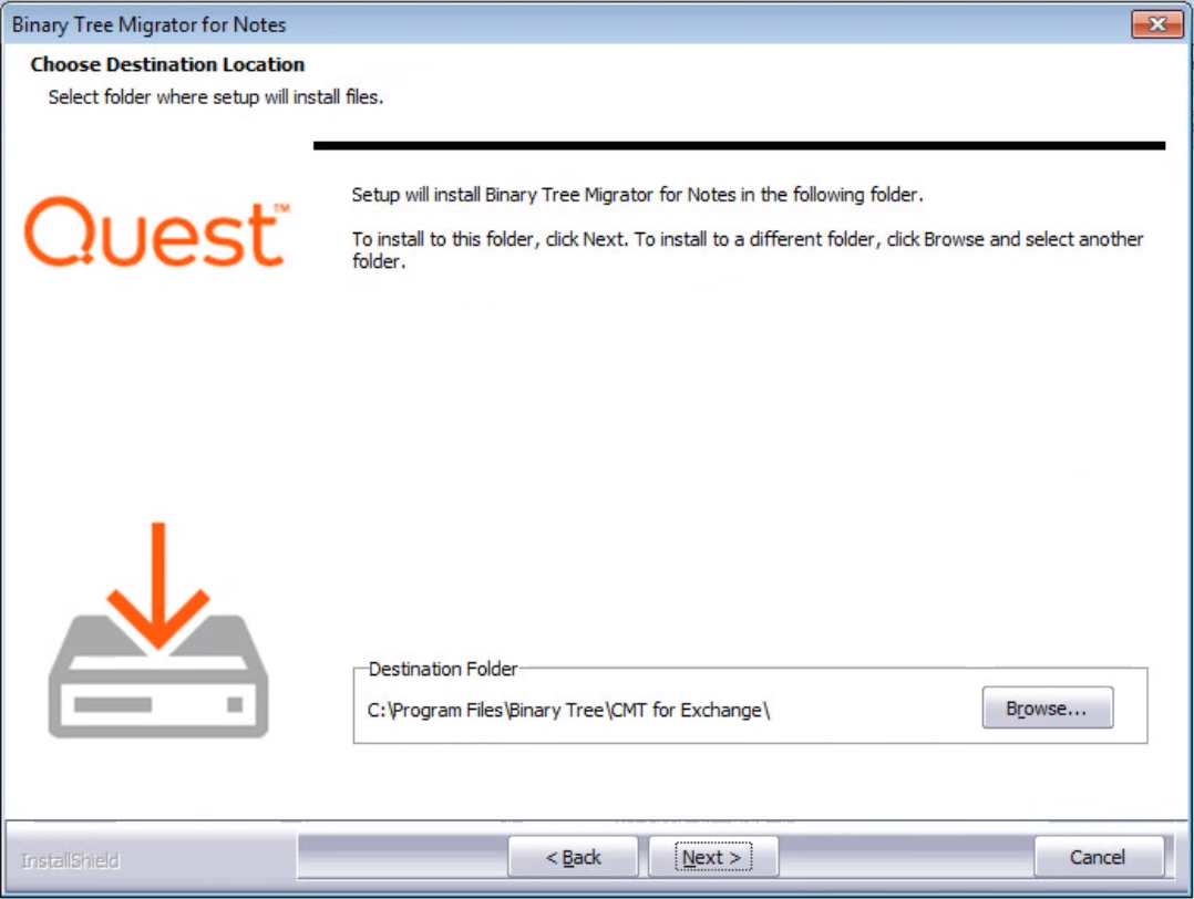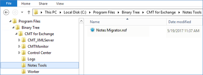 The wizard creates the CMT for Exchange subfolder in the Program Files folder. Within this folder is another subfolder Notes Tools that also contains a copy of the Migrator for Notes Domino database. This copy can be used as a backup if needed.