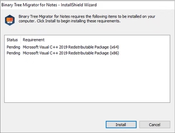 If required software is not installed, a dialog box shown below will be displayed. To allow the wizard to install the required software, click Install.