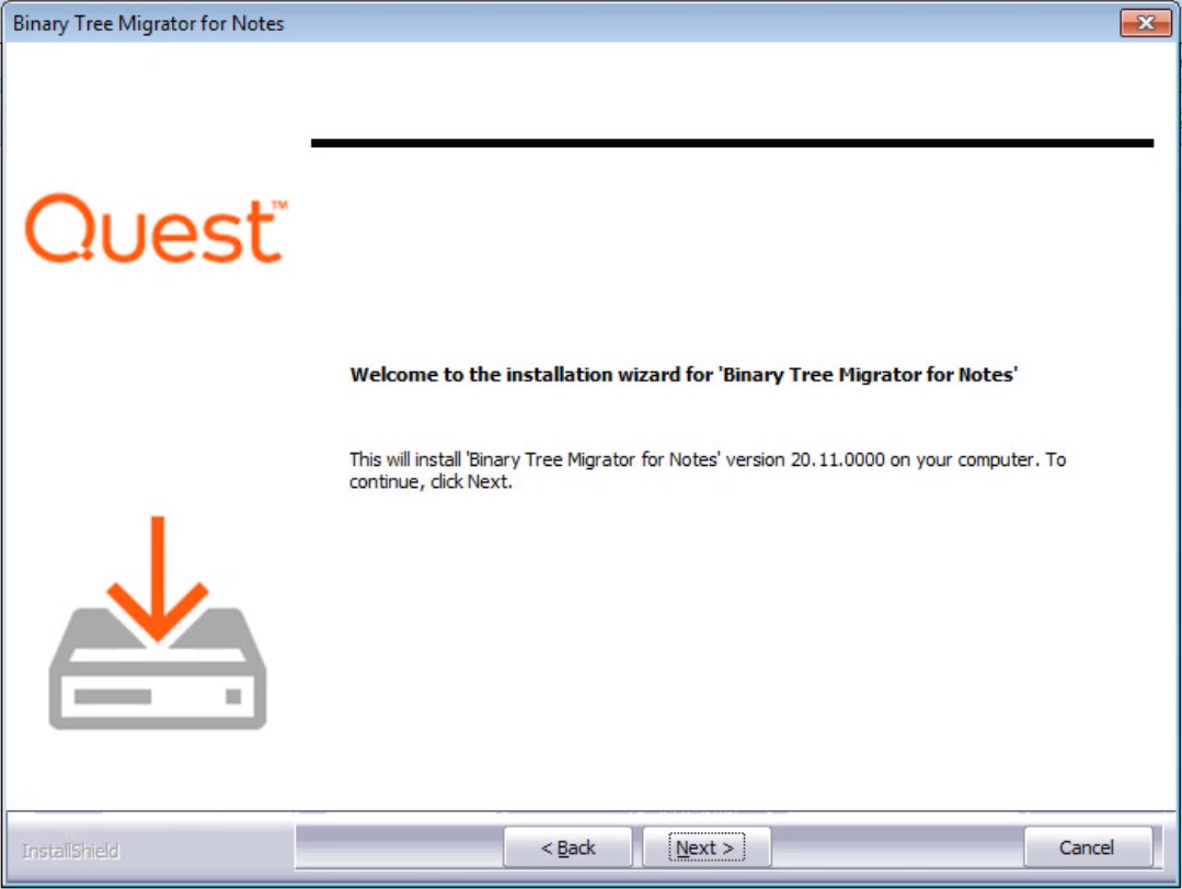 To launch the InstallShield install kit, double-click the Migrator for Notes Setup.exe file from the download location: