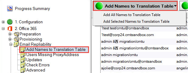 Adding all Domino users’ names to the Translation Table is the recommended method of populating the Name Translation Table. The Translation Table should contain every email address for every user that may have sent an email to any other user. Please note, this is not a list of users to be migrated. It is a list used to translate addresses in migrated messages, calendars, and other migrated documents, so it needs to be as exhaustive as possible.