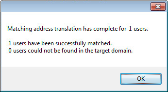 4. After you have selected the entries to add, depending on the number of name entries, this process could take from a few seconds to several minutes; after it’s completed, a confirmation box appears stating that all users have been added to the Translation Table