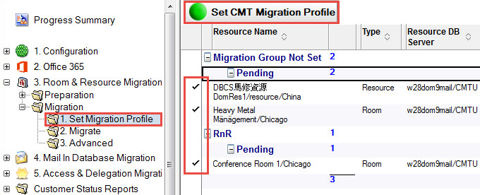 1. In the Navigation Pane, expand Rooms & Resources Migration | Migration under | Set Migration Profile view