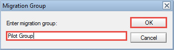 2. Specify a name for the migration group in the Migration Group dialog box and click OK: