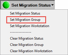 1. From the Set Migration Status drop-down menu, select the Set Migration Status menu option; a dialog box appears with a list of status codes you specified in the Required Settings tab