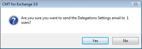 At this point, if you do not intend to migrate mailbox delegation, you can send the end users a report of their delegation settings; select the users from the view and click on the Optional Actions | Send Delegation Settings Email; you will be asked for confirmation before proceeding: