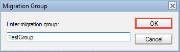 3. Specify the migration group name in the Migration Group dialog box and click OK: