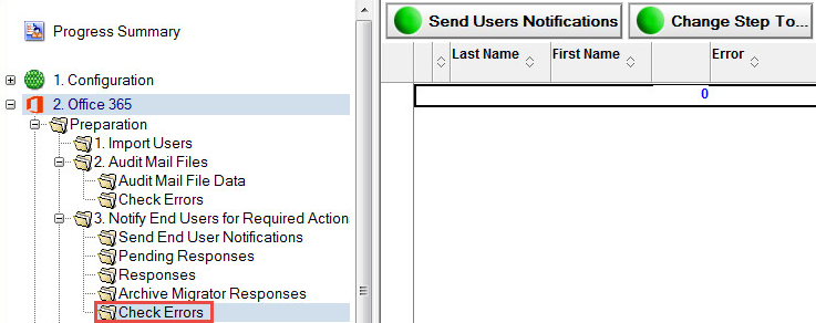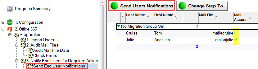 Once a user has been successfully audited, a green checkmark will appear in the Mail Access/Access column of some subsequent views (see Send End User Notifications View screenshot above). This green checkmark will only appear if the Audit Mail Files step has been completed successfully.