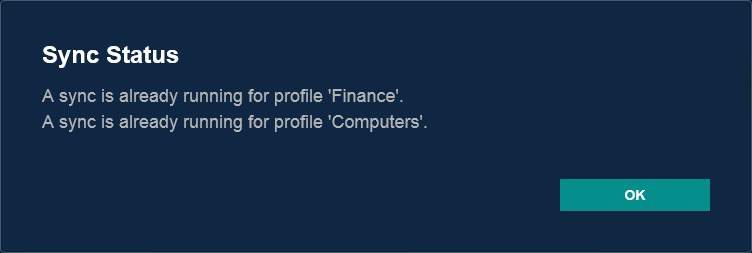 2. After clicking the Run Sync button the following confirmation for the sync of the selected Synchronization Profiles will be displayed.