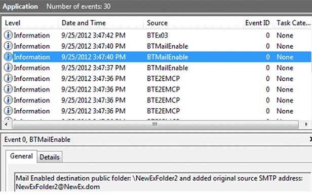 BTMailEnableService is started the first time a Mail-Enabled public folder is migrated and writes output to the application log.