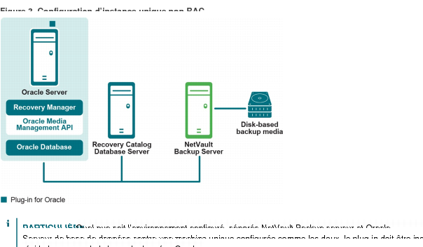 Bien que vous puissiez configurer une seule machine en tant que serveur NetVault Backup et serveur de la base de données Oracle, en d’autres termes, toutes les exigences d’installation et de configuration des logiciels sont effectuées sur une seule machine, Quest recommande que ces deux entités existent sur des machines. Pour en savoir plus sur l’installation du plug-in pour Oracle dans un environnement RAC, voir Conditions préalables à l’installation.