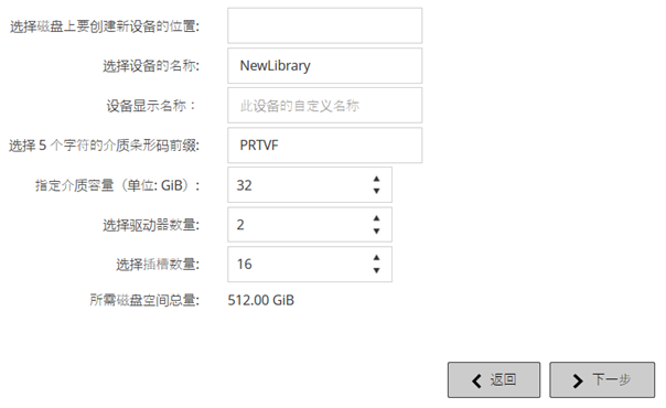 输入或选择虚拟磁带的大小。介质大小是以 GiB 为单位指定的。确保磁盘上的可用空间足以创建虚拟介质。默认值为 32GiB。