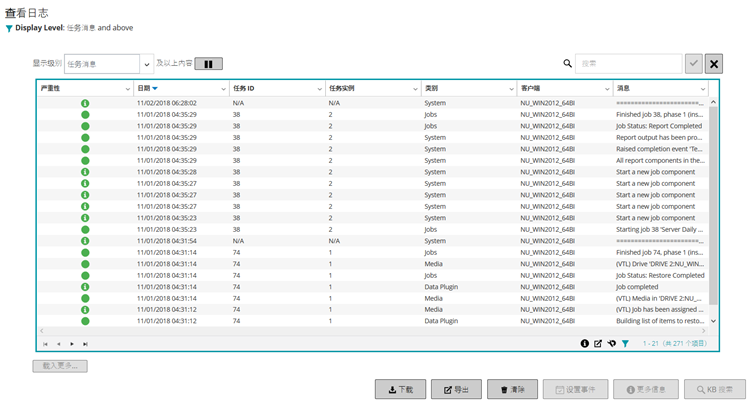 与备份任务、恢复任务和报告任务有关的日志消息。
