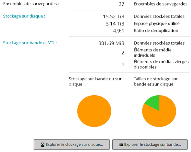 Cette zone affiche le nombre total d'ensembles de sauvegardes stockés dans les unités de stockage sur disque et sur bande.