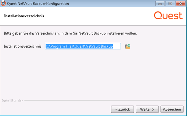 Unter Windows: “C:\Programme\Quest\NetVault Backup” oder “C:\Programme (x86)\Quest\NetVault Backup”