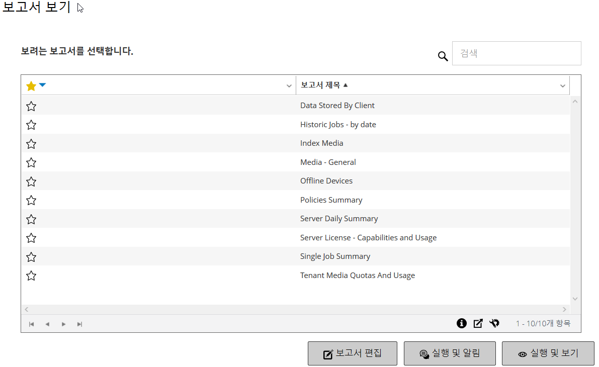 보고서 보기 페이지에서 보고서에 액세스할 수 있습니다. 요청 시에 보고서를 실행하고 볼 수도 있고 보고서 일정을 만들어 지정된 시간에 자동으로 보고서를 생성할 수도 있습니다. 또한 NetVault Backup에서 이벤트 및 알림 방법을 사용하여 이메일로 보고서를 보내거나 보고서를 할 수도 있습니다.