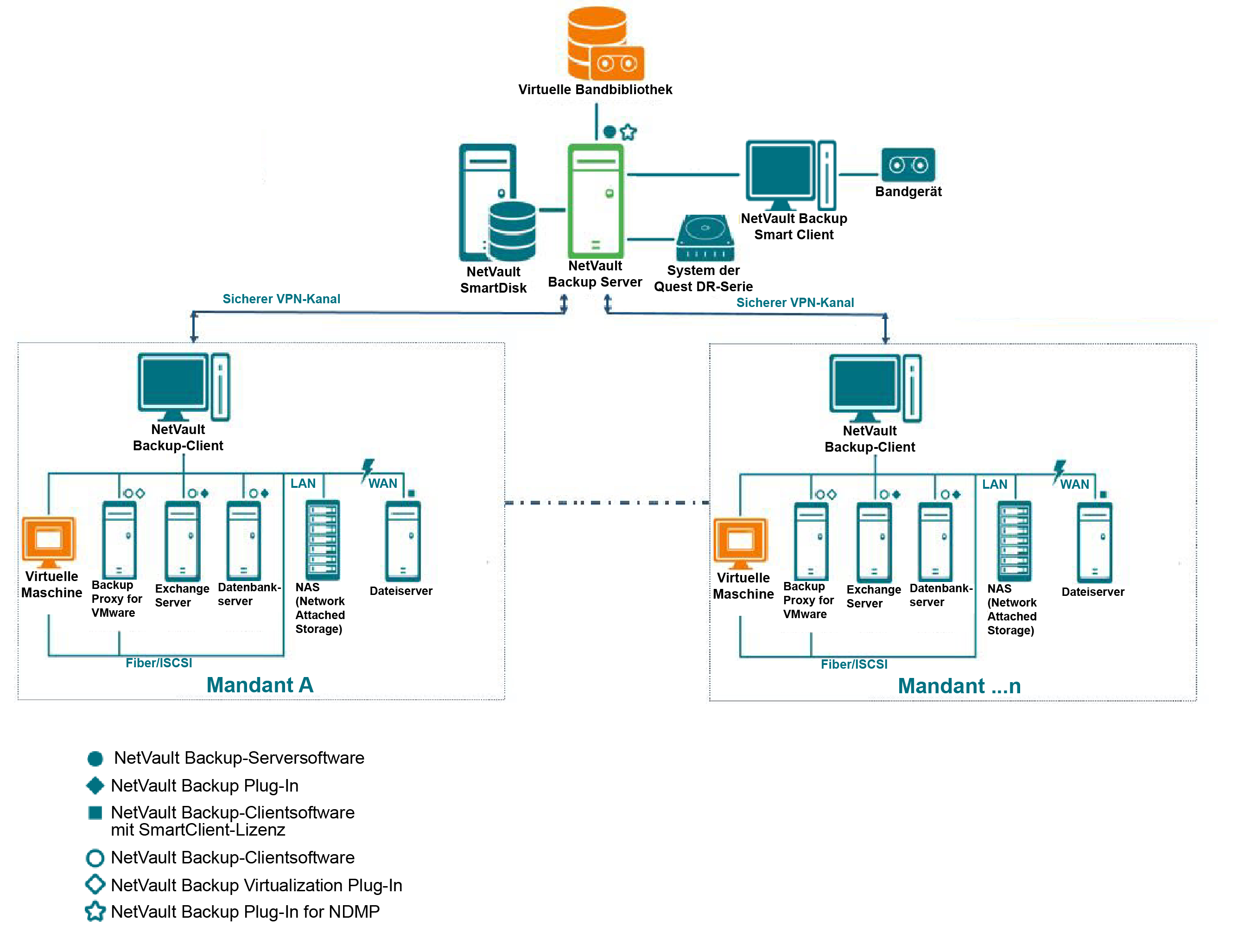 Der NetVault Backup Server stellt die zentralen Dienste zum Schützen der Mandantendaten zur Verfügung.