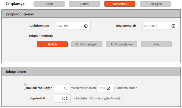 Der Zeitplantyp Wiederholt bietet die folgenden Methoden und Optionen.