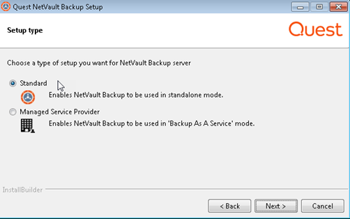 Managed Service Provider: This option allows you to use NetVault Backup Server and provide backup as a service to clients or customers.