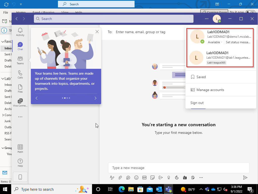 8. Launch the Teams client. Since your device is Microsoft Entra ID Joined, the target Teams account will be automatically added, while the original source account should also be retained.
