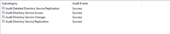 To enable advance audit policy for DS Access, go to gpedit.msc > Computer Configuration > Policies > Windows Settings > Security Settings > Advanced Audit Policy Configuration > System Audit Policies > DS Access and enable Success audit for the below policies.