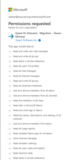Quest On Demand - Migration - Teams - Minimal or Quest On Demand - Migration - Teams - Full consent for the source tenant.