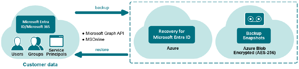 - Back up Microsoft Entra ID and Microsoft 365 users, groups, service principals, device information, conditional access policies, and navigation properties - On Demand Recovery automatically backs up a directory on a regular basis.