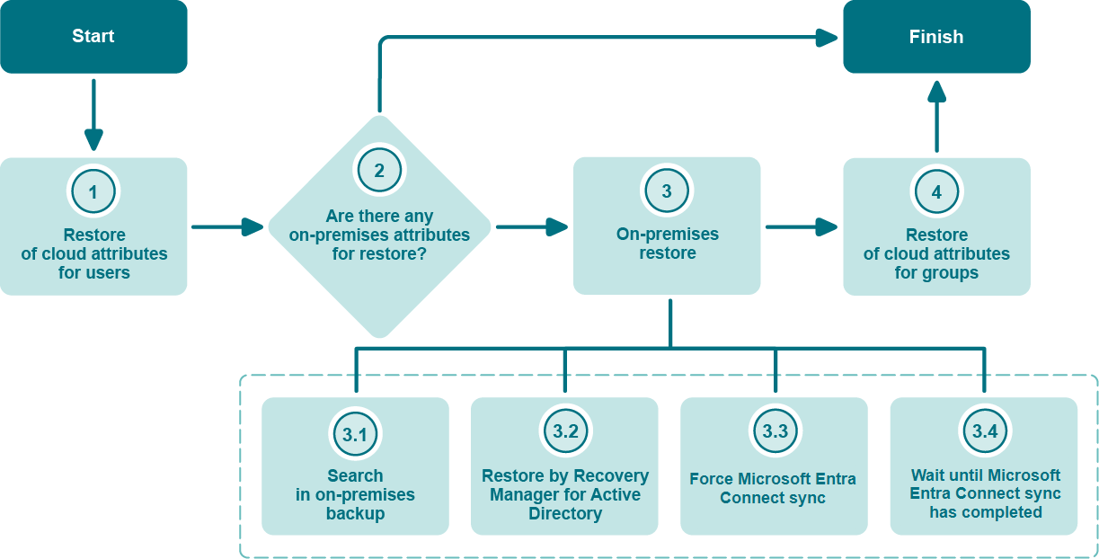- On-premises restore is always performed for member, memberOf, accountEnabled, manager, and directReports attributes.