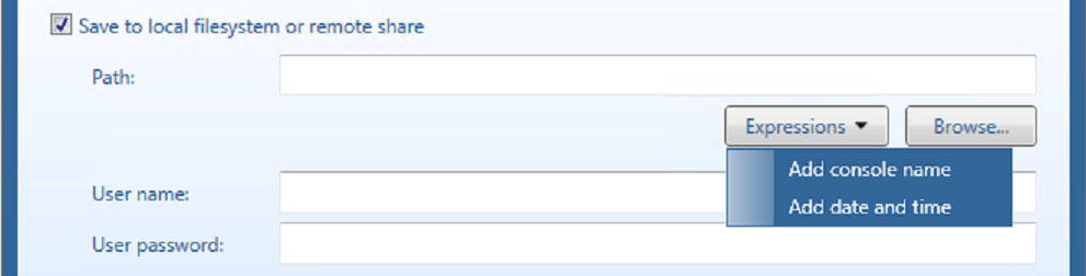 Using the Backup destination of File system enter a path to store the console configuration backup file. Click on the Browse button on the right side of the Path field to open a browser window to help you choose a location.