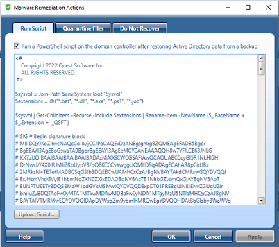 A sample script can be found in C:\Program Files\Quest\Recovery Manager for Active Directory Forest Edition called MalwareRemediation.ps1