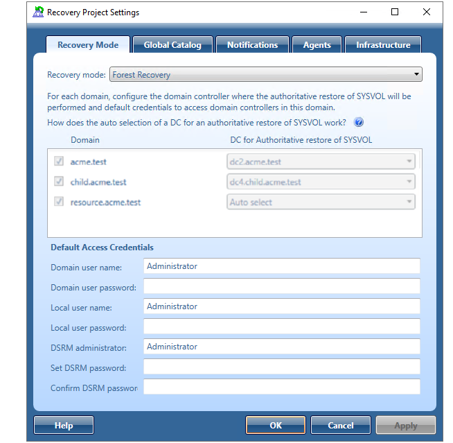 This recovery method is available and selected automatically when the domain controller is a Global Catalog server and belongs to the excluded domain, and either Rebuild GC, advertise normally or Rebuild GC, advertise fast is checked on the Global Catalog tab of the project settings. You can suppress any of the first two options using advanced settings.
