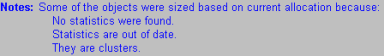 | Current Allocation Notes | The Review Space Usage window sometimes displays a note indicating that some objects were sized based on current allocation instead of current usage. Current allocation and current usage are two sizing options for the Minimize Number of Extents global allocation strategy. You can select either one. However, the current usage option requires current statistics in the Space Manager repository. If statistics are not current for an object, current allocation is used instead of current usage.