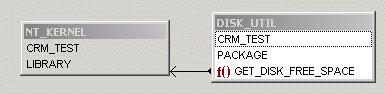 In this example, DISK_UTIL references the library NT_KERNEL, specifically from the function GET_DISK_FREE_SPACE. The model is in Collapse Package view.