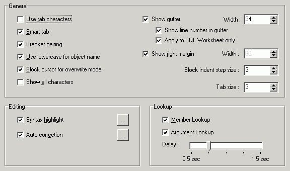 Specify whether to use syntax highlight. If selected, it is possible to define the format for the following syntax: reserved word, SQL function, comment, identifier, quoted identifier, string, number, symbol, data type, global variable, local variable, temporary table, system procedure, invalid object, force, difference highlight (for SQL Comparer), text selection, member lookup and argument lookup.