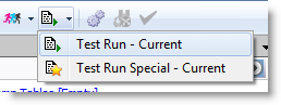 New Test Run buttons replace the Execute and Batch Run buttons. Each button includes new sub-commands with slightly different functionality. These buttons have been redesigned to streamline the test run process. (To specify the number of records to retrieve and the number of times to test run alternatives, use the Test Run Settings dialog or the Test Run Special Settings dialog.)