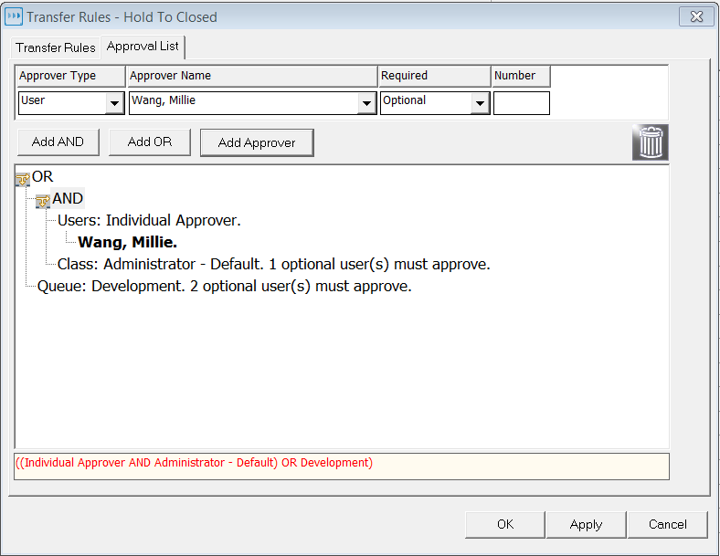 Click OR if the approval of one of two or more approver groups are required |